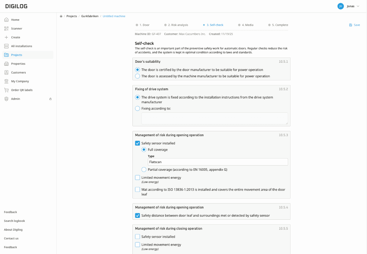 Dokumentation snabbt & enkelt, helt enligt maskindirektivet.