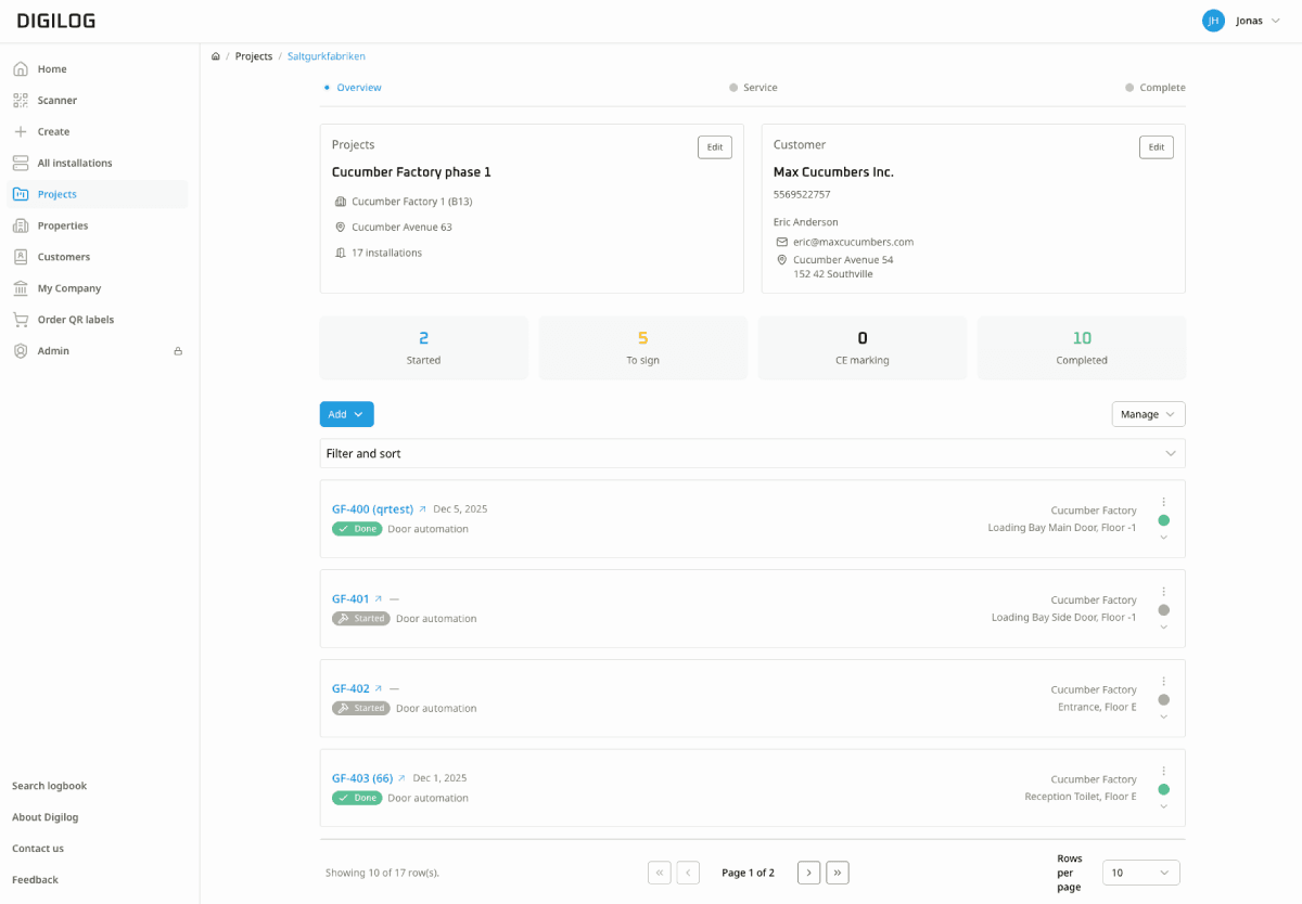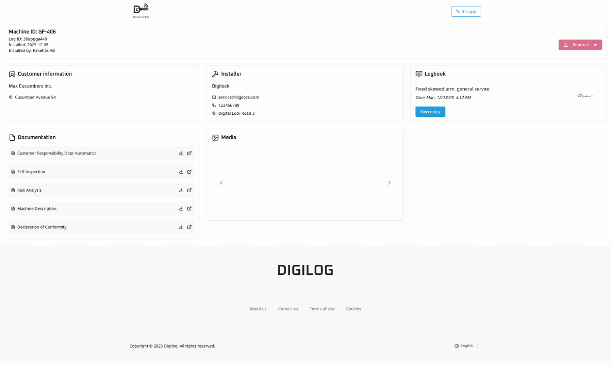 Dokumentationen är lagrad och Digilog påminner när det är dags för service.